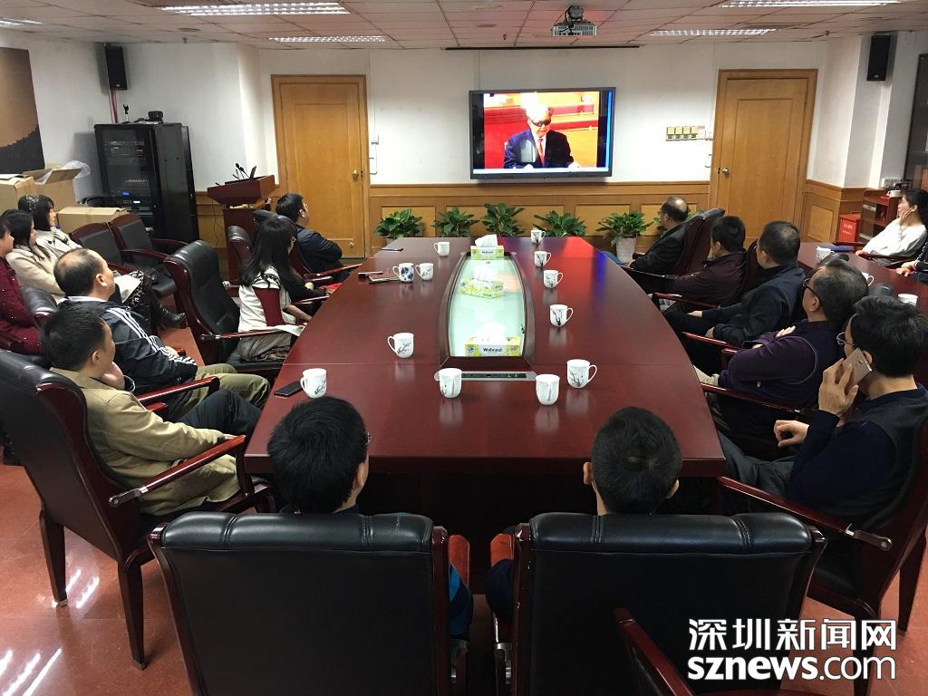 羅湖區(qū)投資推廣局集中收聽收看慶祝改革開放四十周年大會(huì)。