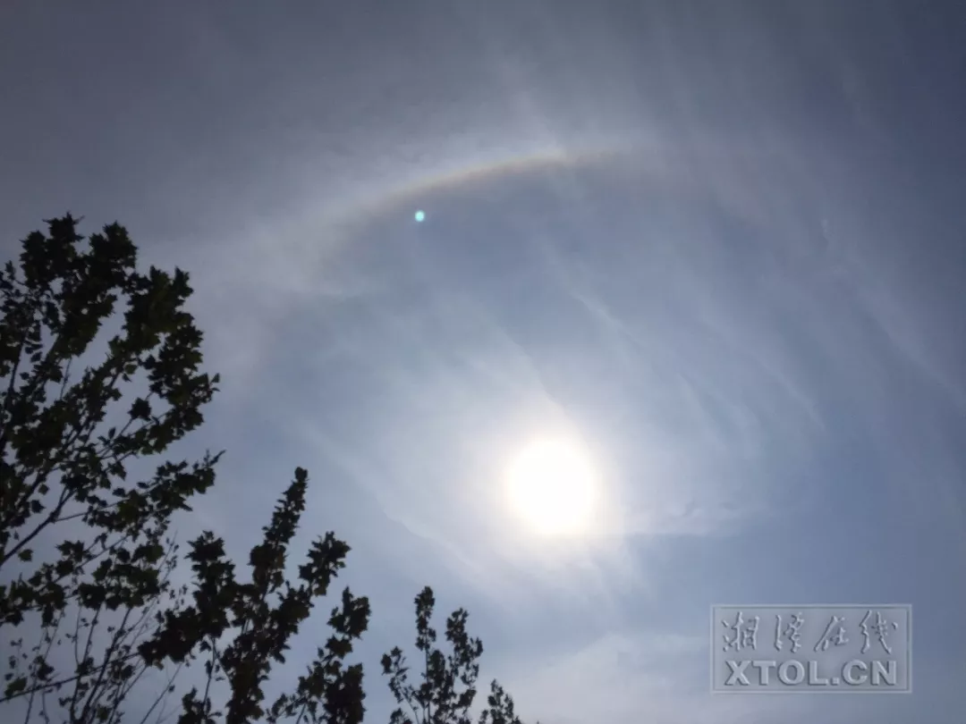 8月8日上午9時20分左右,蓮城上空出現(xiàn)與彩虹相似的日暈。(記者 方陽 攝)