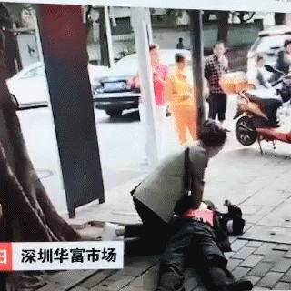 20日上午,福田華富市場(chǎng)附近一名男子突然倒地,呼吸心跳驟停。