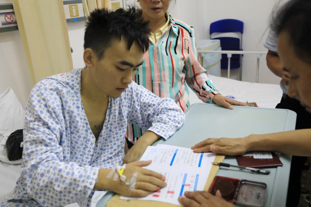 10年前,向金華中專畢業(yè)后從家鄉(xiāng)來到深圳打工,在富士康工作了8年。2016年9月,他被查出患有淋巴癌,在北大深圳醫(yī)院進(jìn)行了放療化療。病情穩(wěn)定后,考慮到家庭經(jīng)濟(jì)情況,他離開深圳回老家進(jìn)行保守治療。此后,每到病情危重的時候,他都會回到深圳,回到北大深圳醫(yī)院,和醫(yī)生一起嘗試著尋找奇跡之門。