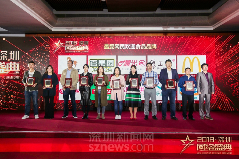 “十大行業(yè)最受網(wǎng)民歡迎品牌”獎項(食品)獲獎代表上臺領(lǐng)獎