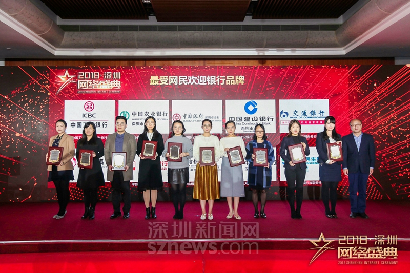 “十大行業(yè)最受網(wǎng)民歡迎品牌”獎項(銀行)獲獎代表上臺領(lǐng)獎