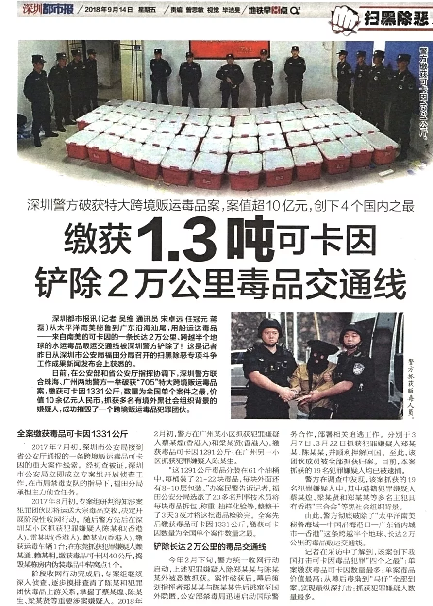 ★★在公安部和省公安廳指揮協(xié)調(diào)下,福田警方作為主力軍,聯(lián)合珠海、廣州兩地警方一舉破獲“705”特大跨境販運(yùn)毒品案,創(chuàng)下我國打擊可卡因毒品犯罪“四個(gè)之最”:單案繳獲毒品可卡因數(shù)量最多;單案毒品價(jià)值最高;從幕后毒梟到“馬仔”全部到案,實(shí)現(xiàn)最縱深打擊;抓獲犯罪嫌疑人數(shù)量最多。
