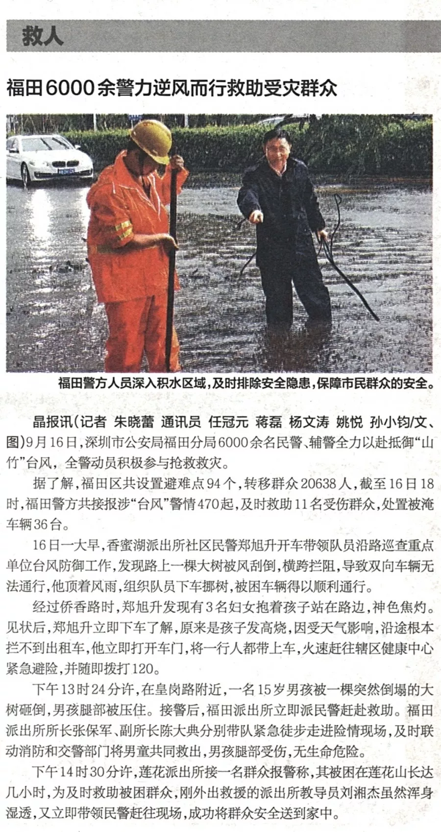 ★★福田警方啟動一級勤務(wù),全力投入防御超強(qiáng)臺風(fēng)“山竹”行動中。福田警方共接報(bào)涉“臺風(fēng)”警情470起,及時(shí)救助11名受傷群眾,轉(zhuǎn)移群眾20638人,處置被淹車輛36臺,確保了轄區(qū)治安穩(wěn)定。