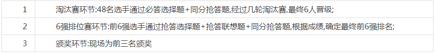 你熟悉改革開放的相關(guān)知識嗎? 你了解深圳這個改革開放窗口城市嗎? 你關(guān)注深圳特區(qū)的發(fā)展歷程嗎? 你知道深圳各大地標(biāo)嗎? …… 只要你有興趣 歡迎報名參加我們將選取 活動現(xiàn)場還有驚喜大禮等你哦大家千萬別錯過喲! 第一名將獲得華為P20手機(jī)一部 圖片來源:華為官方旗艦店 前6強(qiáng)選手將獲得豐厚獎品哦! 競賽流程 競賽規(guī)則 淘汰賽獎勵和規(guī)則 【獎勵】本次知識競賽共有七輪淘汰賽,將從48名參賽選手中,選出6位選手晉級排位賽。48名參選選手均將獲得手繪深圳景色明信片,6強(qiáng)選手都將獲得獎品。 【規(guī)則】淘汰賽中,所有選手都兩兩PK答題,號碼牌數(shù)字由選手自己盲選,號碼牌接近的兩人自動互為PK對手(1號牌 PK2號牌、3號牌 PK4號牌……依次對應(yīng)PK)。題目皆為選擇題,答案有A、B、C三個,選手要從中選出正確答案。誰答對的多誰贏,同分再搶答一題定勝負(fù),輸?shù)囊环阶詣犹蕴?/p> 排位賽規(guī)則 【總規(guī)則】所有選手都將分到一個搶答器,初始得分都為100分,比賽過程中選手們進(jìn)行搶答,答對得20分,答錯扣10分,提前搶答扣10分,每題答題時間10秒,答題超時扣10分。 排位賽共有20道搶答題,其中10題為選擇題,10題為聯(lián)想題: 【選擇題規(guī)則】選擇題答案有A、B、C三個,選手要從中選出正確答案,參賽選手必須在主持人喊出“開始”后,才可搶答,提前搶答扣分; 【聯(lián)想題規(guī)則】聯(lián)想題的每一道題的答案都是一個專有名詞,每道題目主持人會用較慢速描述該名詞開始,選手從主持人的描述中獲取線索,猜出答案,選手可隨時搶答。答對一題得20分,答錯扣10分。 了解清楚比賽流程和規(guī)則之后, 是不是想趕緊報名呢? 那么,具體如何參與呢? 報名方式 1、掃描下方二維碼進(jìn)入原文留言,回復(fù)“報名+姓名+電話”; 2、回復(fù)截止時間至2019年1月3日。如若報名成功,將會收到我們的回復(fù)通知; 3、本次活動免費報名,活動解釋權(quán)歸深圳發(fā)布廳所有。 期待你的參與! 快快報名吧! 內(nèi)容來源:深圳發(fā)布 如需轉(zhuǎn)載,請注明以上內(nèi)容