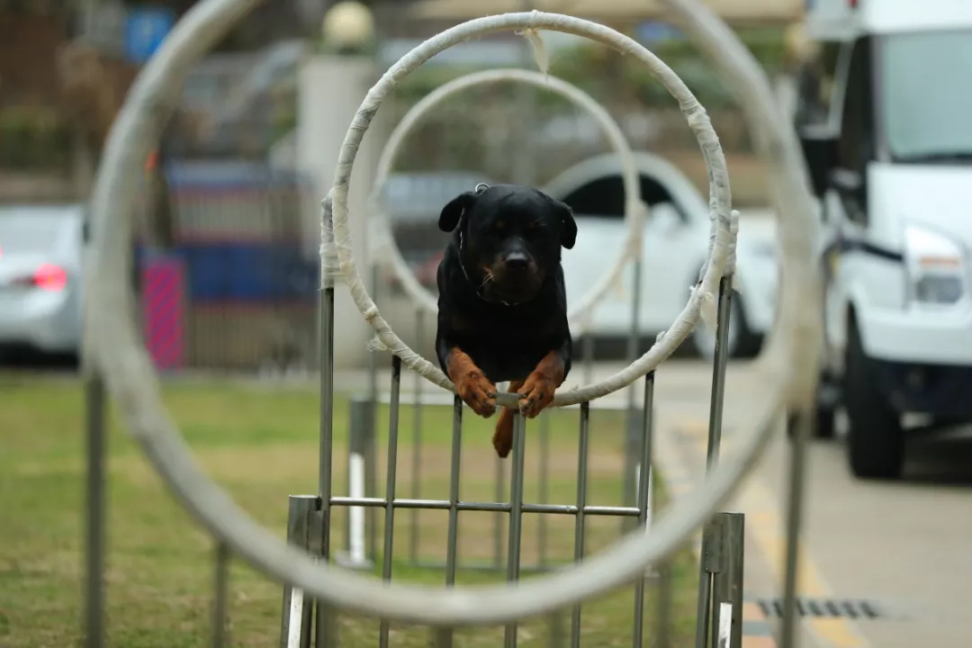 大家好,我是威威,今年5歲,相當(dāng)于人類的壯年。如果有一種警犬能夠做到不怒自威,那就是我——羅威納犬。我長(zhǎng)得豹頭環(huán)眼,烏黑間黃,脖粗體健,動(dòng)作迅猛,氣勢(shì)強(qiáng)悍,是世界上最具勇氣和力量的犬種之一,所以訓(xùn)導(dǎo)員譚學(xué)明給我取名威威。