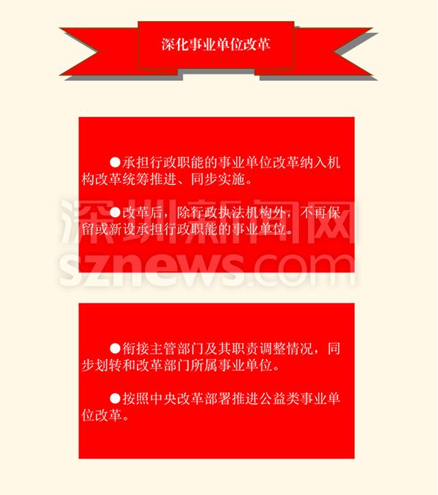 近日,《深圳市機構改革方案》(以下簡稱“方案”)經(jīng)省委、省政府批準,并報中央備案同意。1月8日至9日,市委召開六屆十一次全會,對全市深化機構改革工作作出全面部署,我市機構改革工作進入全面實施階段。