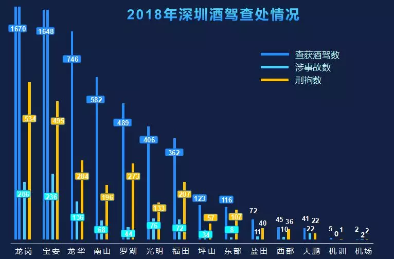 2018年深圳交警共受理危險駕駛案6687宗,立案6307宗6313人,處置醉酒駕駛6313人,全部采取了刑事強制措施。涉及酒駕事故925宗,占總數的14.65%。此外,2018年辦理阻礙執(zhí)法案85宗89人,行政拘留74人,教育警告15人;辦理妨害公務案7宗,刑事拘留7人。
