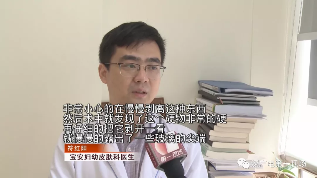從曾女士的左側(cè)下眼瞼中取出的,正是這個(gè)長(zhǎng)度接近一厘米的玻璃碎塊。