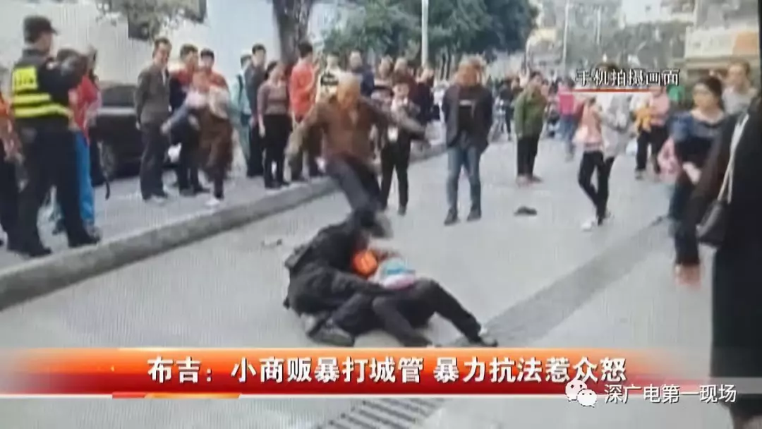 布吉一商販當(dāng)街暴打城管,還全家人輪番上陣!周?chē)罕娨才?/h1>