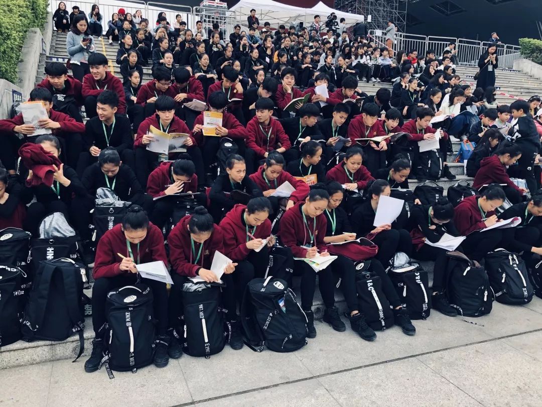 彩排階段,是深圳各中小學期末考試時間,學生們邊排練邊學習,不誤期末考試,候場時時??梢钥吹酵瑢W們埋頭復習的場景,她們利用在訓練期間短暫的休息時間,溫習復習資料和做課后作業(yè)。