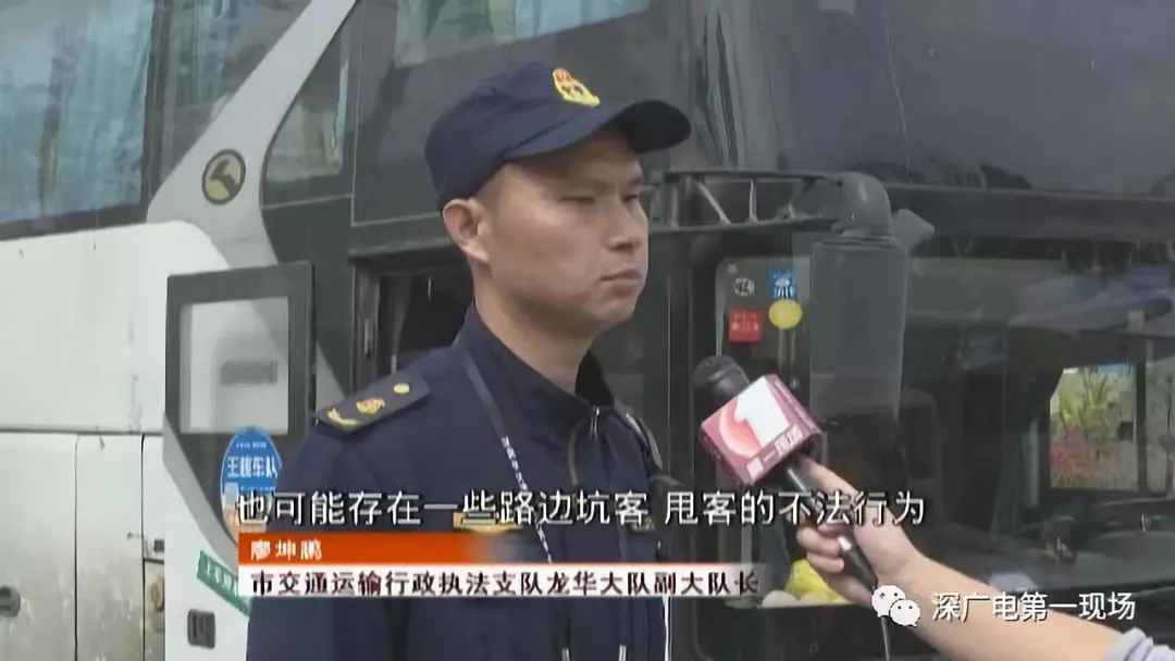 隨后,記者將大巴車非法營運(yùn)的情況反映給深圳交通運(yùn)輸行政執(zhí)法支隊(duì)龍華大隊(duì)。很快,執(zhí)法人員來到了現(xiàn)場(chǎng)。下午1點(diǎn)30分左右,20多名乘客上了一輛大巴后駛出了集合點(diǎn),執(zhí)法人員立即采取行動(dòng)。