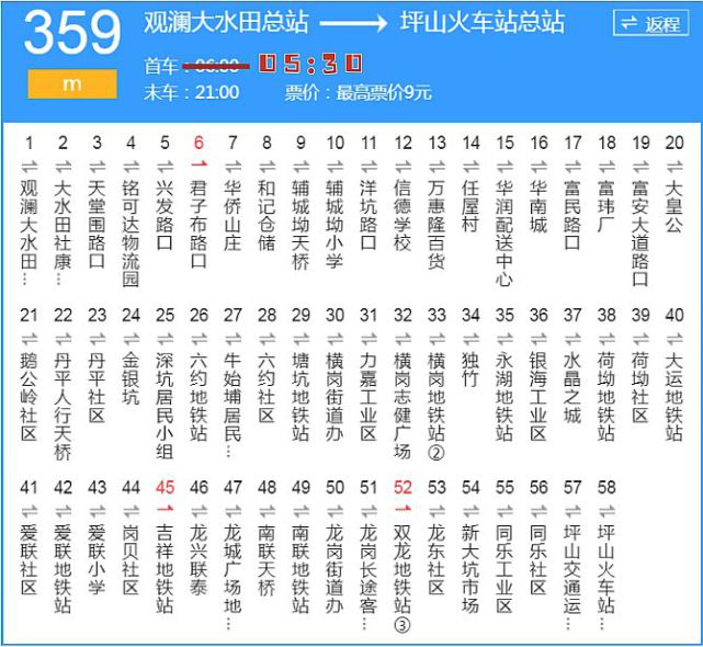 起訖站:坪山火車站總站——龍崗長(zhǎng)途客運(yùn)站