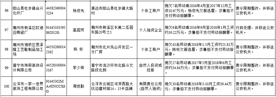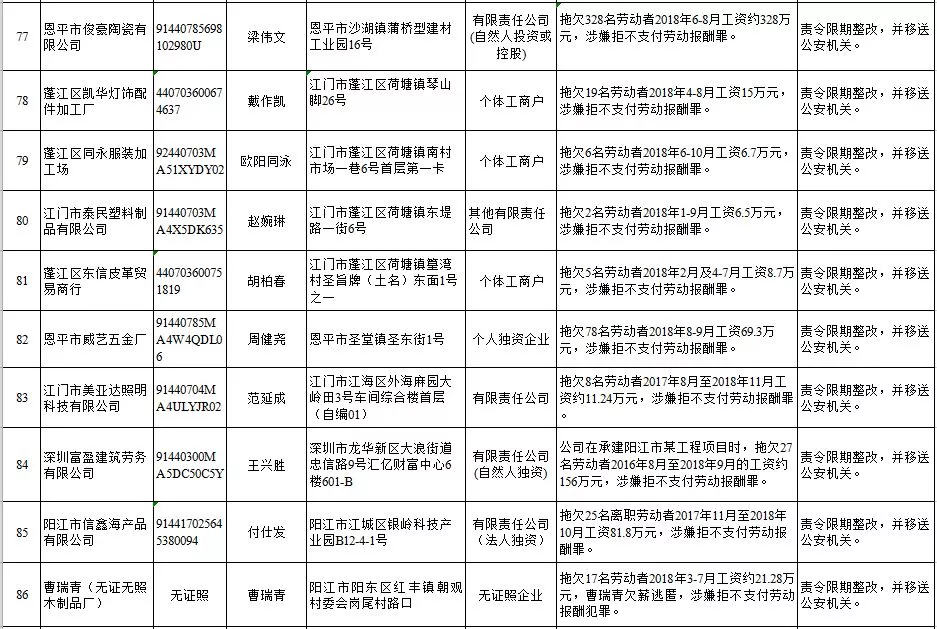 深圳新聞網(wǎng)2019年1月29日訊 (記者 劉婷)據(jù)廣東發(fā)布消息,省人社廳近日公布,2019年第一批用人單位重大勞動(dòng)保障違法行為名單。到底是哪些企業(yè)在惡意欠薪?這些“老賴”企業(yè)的營(yíng)業(yè)執(zhí)照、地址、法人等等超全信息都在這!