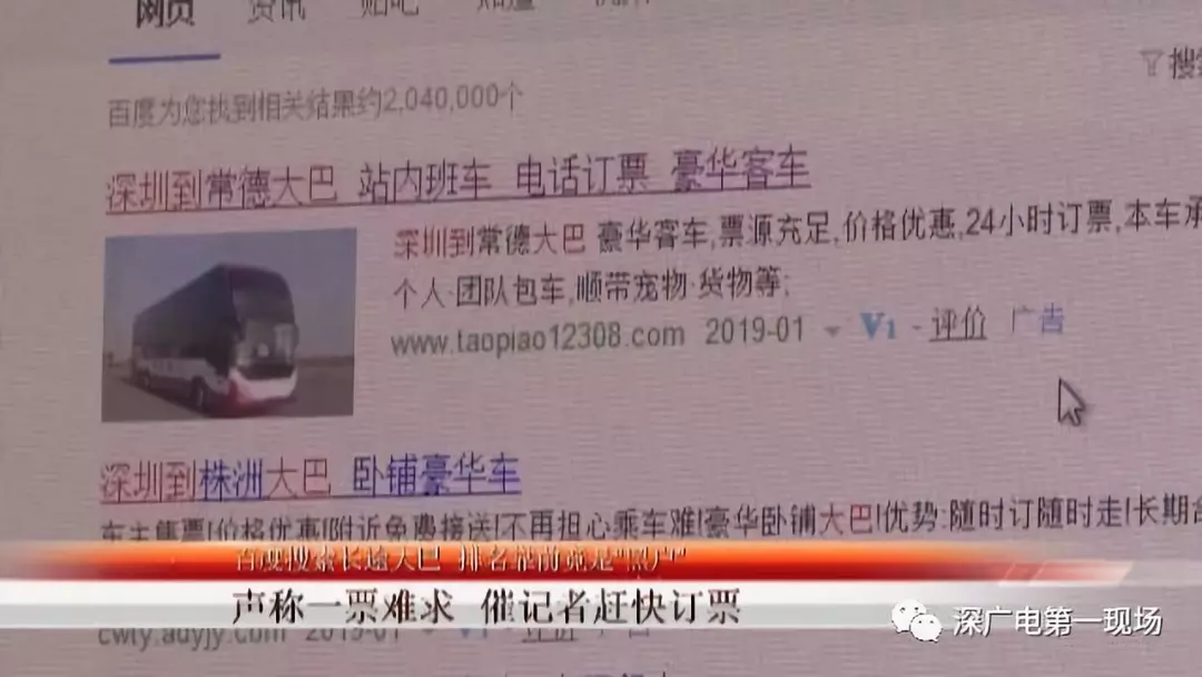 記者首先通過網(wǎng)絡(luò)搜索從深圳到湖南的大巴車,發(fā)現(xiàn)排在前面幾位的全部都是帶有廣告標(biāo)識的網(wǎng)頁,進(jìn)入網(wǎng)頁以后發(fā)現(xiàn),上面除了簡單的宣傳文字和聯(lián)系電話以后,沒有任何其他的東西。記者嘗試撥打網(wǎng)頁上的聯(lián)系電話,對方表示不可以在網(wǎng)上購票,而是跟昨天查處的非法營運(yùn)大巴一樣,必須到他們指定的地方乘車。