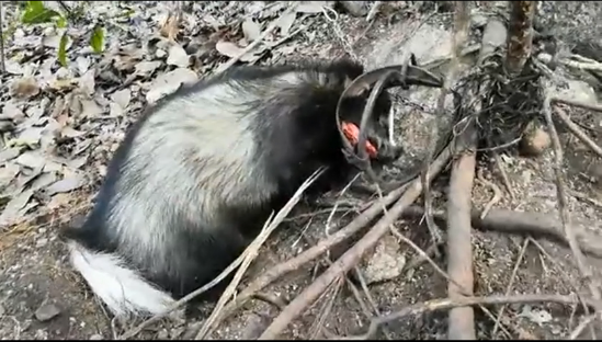 1月28日,市民馬先生在光明阿婆髻山登山時,發(fā)現(xiàn)一只野生動物被偷獵者的鐵夾子夾住了