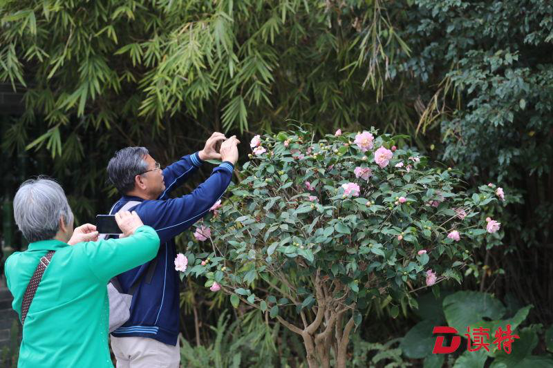 大年初五,天氣溫暖舒適,園博園里的游客一撥接一撥。也許是對(duì)中式傳統(tǒng)風(fēng)格的青睞,被茶花展吸引的客流中有不少中老年游客。"天氣好,花也美,美好的景色人人愛(ài)看,人老了心還沒(méi)老,也過(guò)來(lái)賞賞花拍拍照,高興?。⒛杲呤耐醢⒁谭浅i_(kāi)心地說(shuō)。