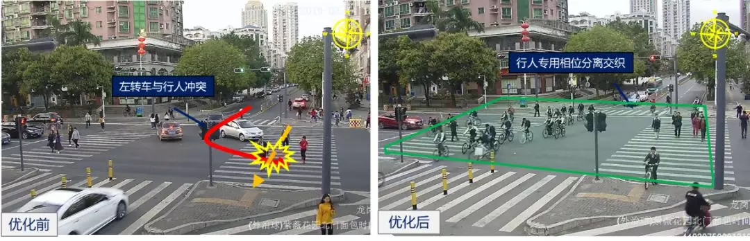 民治街道玉龍學(xué)校周邊信號路口致遠(yuǎn)/龍匯路口在上學(xué)時(shí)段啟用機(jī)動(dòng)車控右策略,在開學(xué)當(dāng)天上下學(xué)時(shí)段通過對機(jī)動(dòng)車采取控右策略,避免右轉(zhuǎn)流與側(cè)邊行人過街的干擾,消除安全隱患。