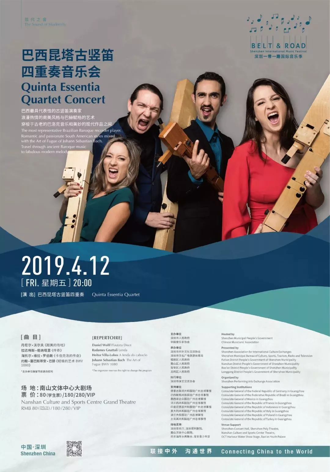 來自巴西的昆塔古豎笛四重奏,專程獻(xiàn)上一場(chǎng)融浪漫熱情的南美現(xiàn)代風(fēng)格、巴西民族風(fēng)與巴洛克相結(jié)合的精彩演出。