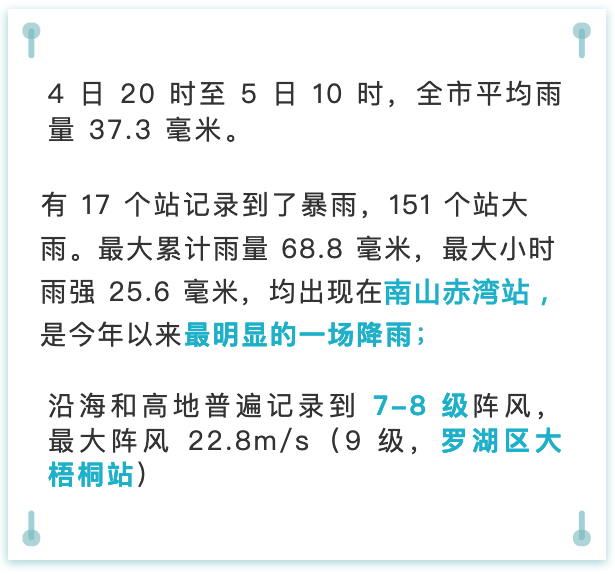 6-9日深圳仍有較明顯降水,間中伴有8級左右短時大風(fēng)、短時強(qiáng)降水和雷暴等強(qiáng)對流天氣。