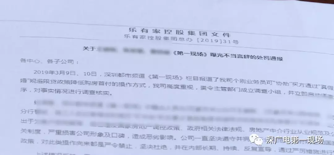 樂有家公司通報(bào)稱,《第一現(xiàn)場(chǎng)》曝光的萬(wàn)豪月半山分行的王姓、陳姓業(yè)務(wù)員,以及蘭溪谷分行的曹姓業(yè)務(wù)員,提及可以協(xié)助買方通過“真假離婚”規(guī)避限貸政策,降低購(gòu)房首付的言辭,已違反國(guó)家房地產(chǎn)調(diào)控政策、政府相關(guān)法律法規(guī)、行業(yè)規(guī)范等,造成惡劣影響,對(duì)相關(guān)人員進(jìn)行嚴(yán)肅處理。
