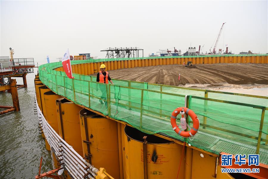 這是深中通道伶仃洋大橋東錨碇施工現(xiàn)場(chǎng)(3月13日攝)。新華社記者鄧華攝