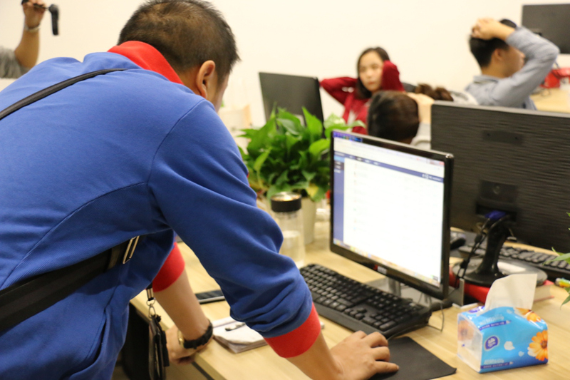 10分鐘后,深晚記者佯裝購物,抵近詐騙團伙老巢進行觀察。記者發(fā)現(xiàn),在抓捕目標附近的電梯、樓梯和通道處,都已有警方布置的監(jiān)視警力。透過位于廣場二樓的深圳市某光信息科技有限公司的玻璃門,記者觀察到里面已有上百名員工上班,他們有的全神貫注地盯著辦公桌上的電腦,有的在打電話,渾然不知早已被警方包圍。