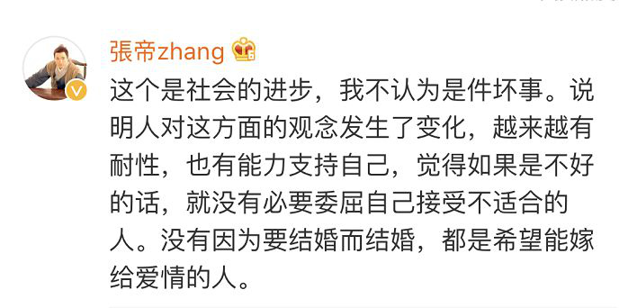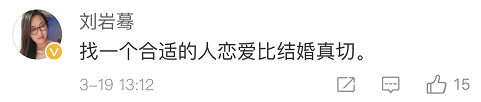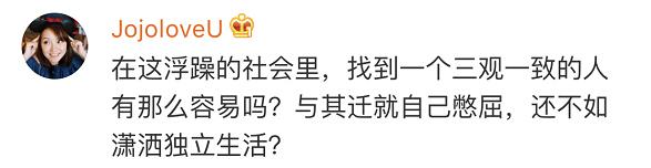 以前想著是28歲結(jié)婚,現(xiàn)在已經(jīng)無所謂了。如果是和對的人結(jié)婚,在我心里婚姻排第一,主要還是因人而決定步入婚姻。對戀愛、結(jié)婚對象最主要的標(biāo)準(zhǔn)就是價(jià)值觀要吻合。