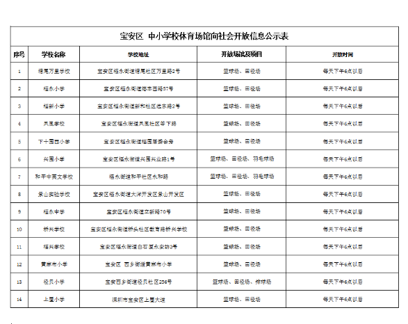 深圳市教育局關(guān)于學(xué)校體育館向社會(huì)開放的信息公告
