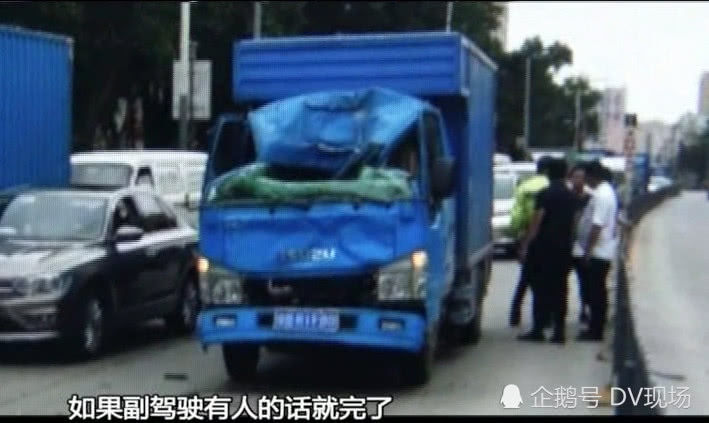 隨后裝竹子的前車開到斑馬線前突然剎車,緊跟其后的另一輛貨車剎車不及直接撞上,竹子直接插穿了后車的駕駛室,隨即車頭碎片橫飛,駕駛室嚴(yán)重變形。