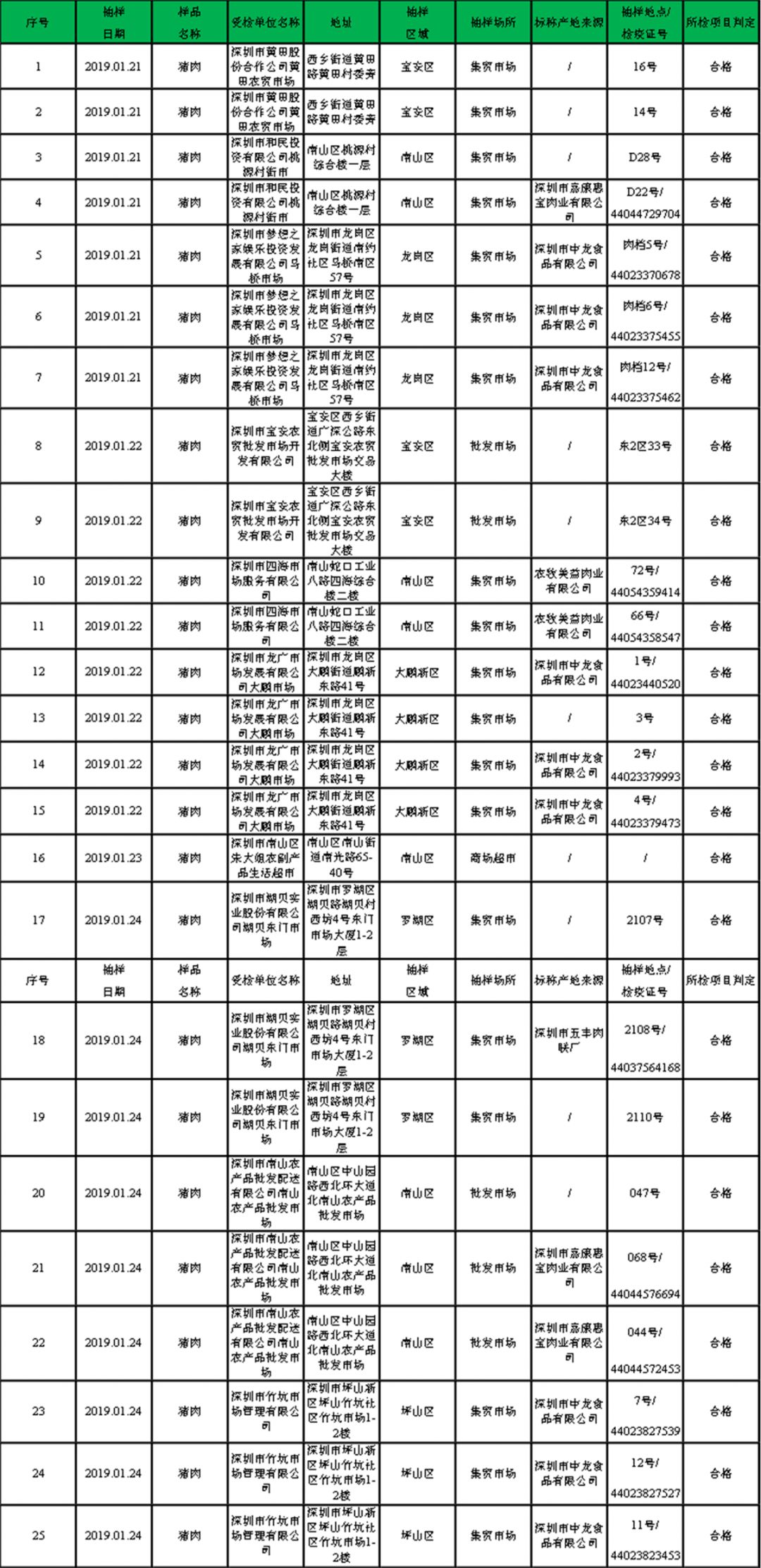 豬肉產(chǎn)品和蔬菜抽檢結(jié)果