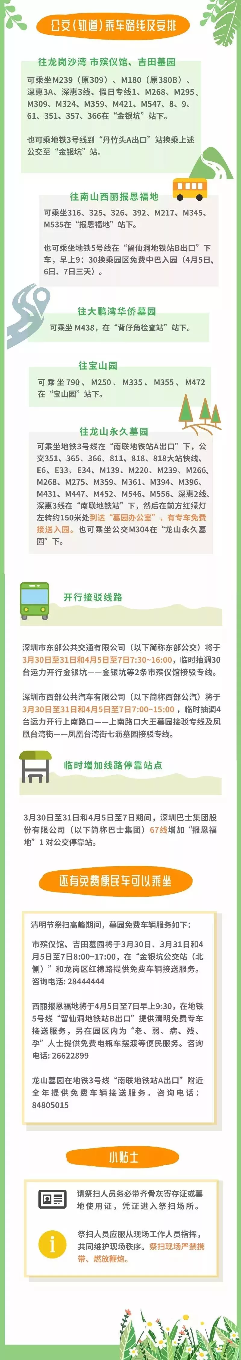 交警部門將視情況對(duì)上述地點(diǎn)進(jìn)行交通管制,為滿足市民朋友出行祭掃需要,除了給大家準(zhǔn)備出行指引外還將開行墓園接駁專線、增加??空尽⒃黾舆\(yùn)力請(qǐng)大家文明出行、綠色出行。