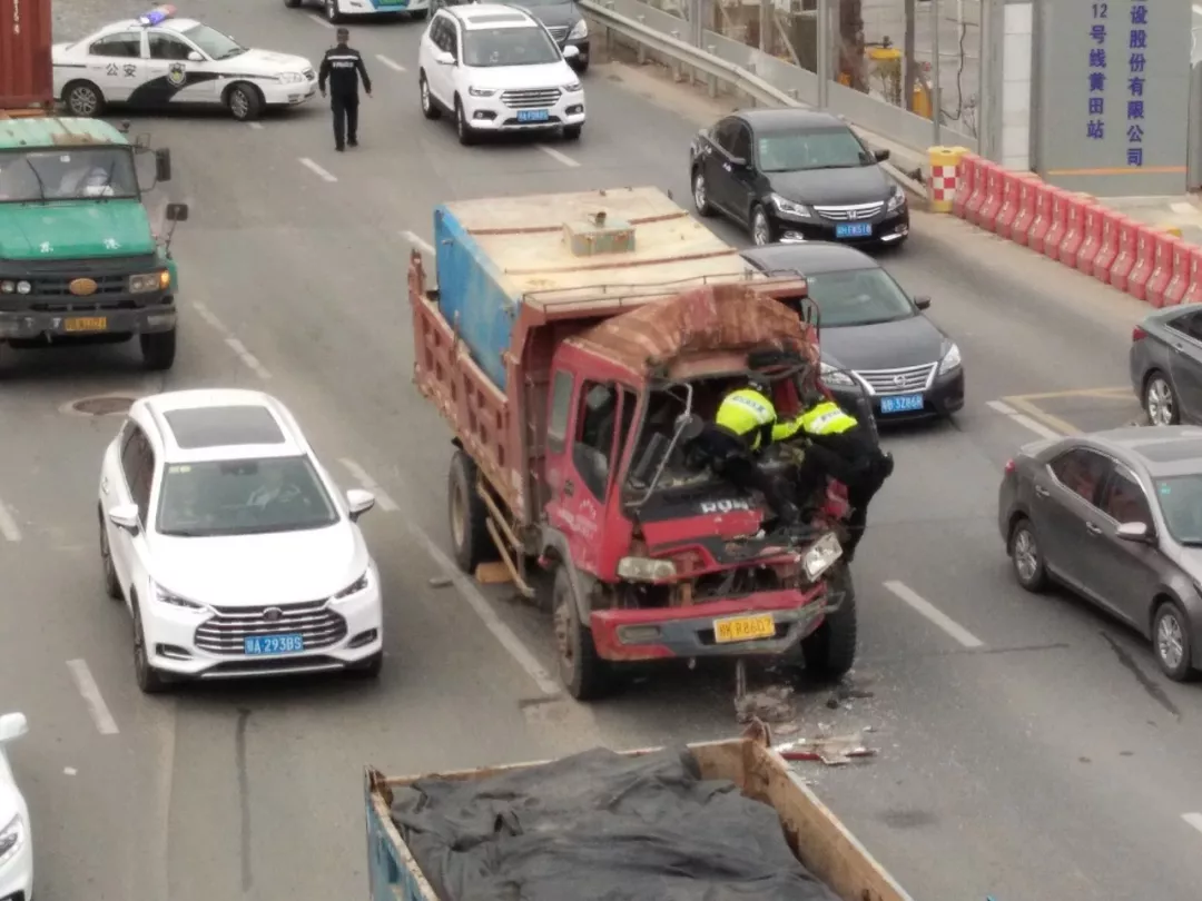 事發(fā)后,深圳交警第一時(shí)間了解情況并趕赴現(xiàn)場(chǎng)。交警鐵騎到場(chǎng)后立即上前查看被困司機(jī)情況,所幸司機(jī)意識(shí)清醒并無生命危險(xiǎn),但其手部多處擦傷,腿部被壓在方向盤下不能動(dòng)彈。