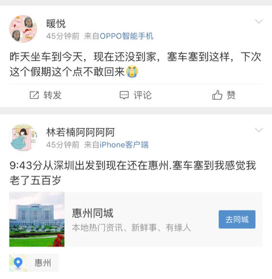 在等待他平按抵達(dá)期間,小編翻看了一下朋友圈與微博,發(fā)現(xiàn)許多人的回家路,一如既往地變成了一個個鐘數(shù)。