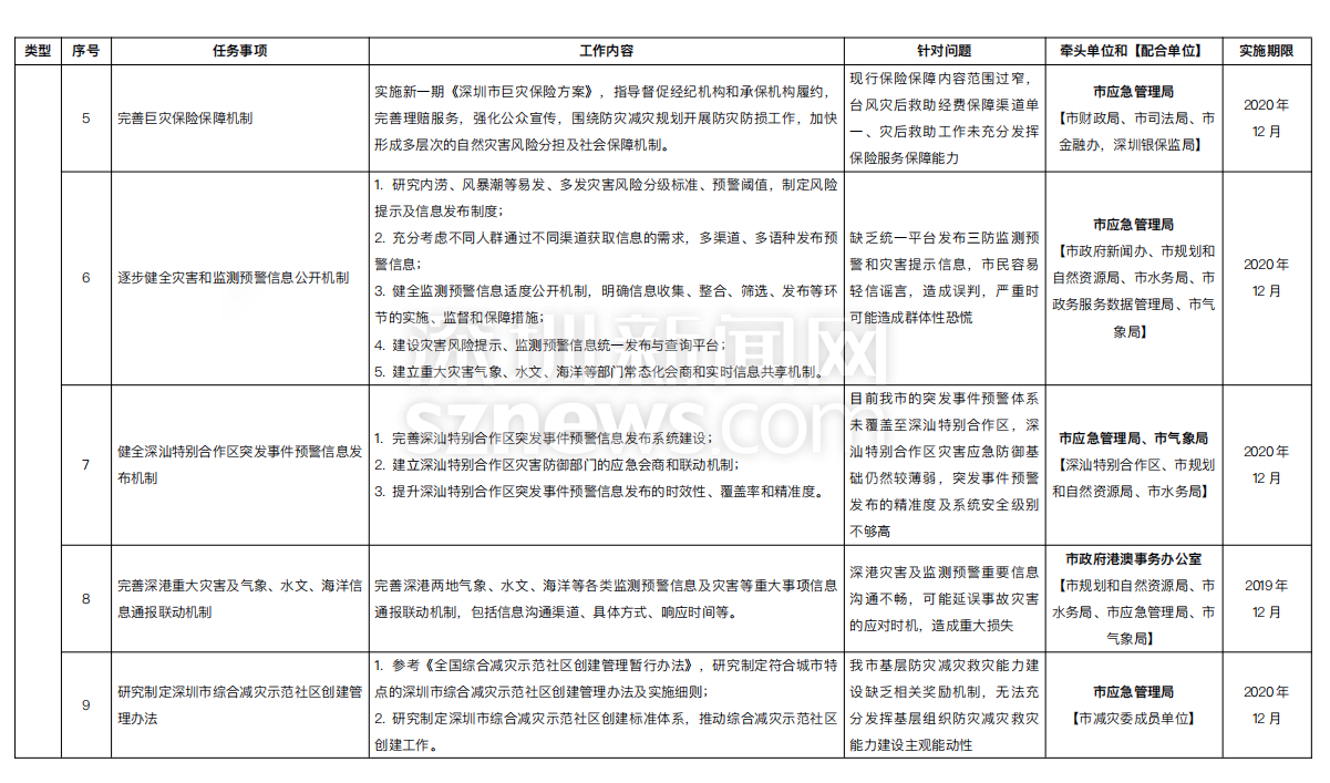 附:《深圳市提升臺(tái)風(fēng)暴雨災(zāi)害防御能力重點(diǎn)任務(wù)實(shí)施方案一覽表》