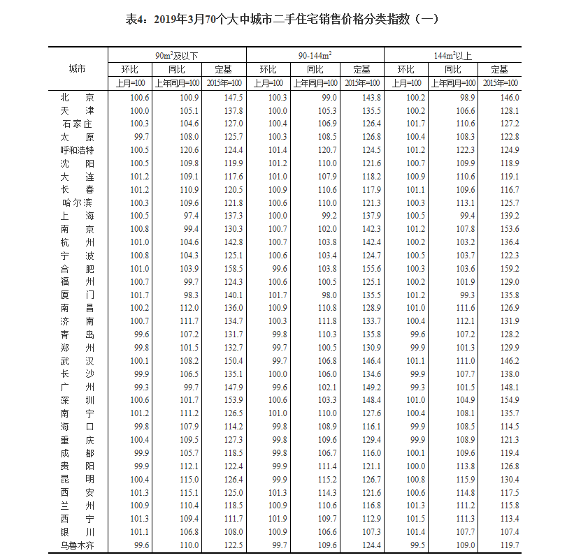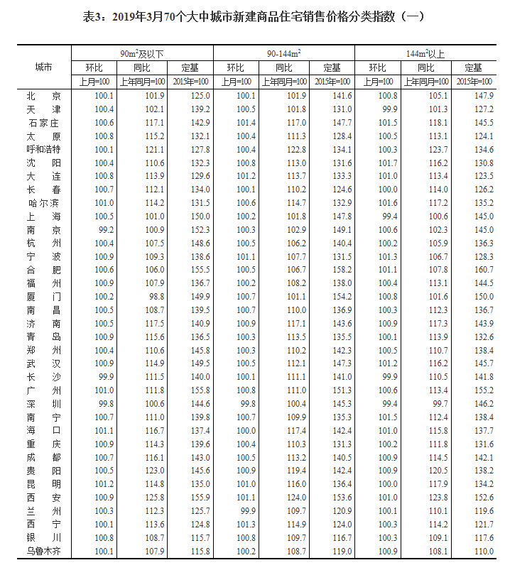2019年3月份70個(gè)大中城市商品住宅銷售價(jià)格變動(dòng)情況
