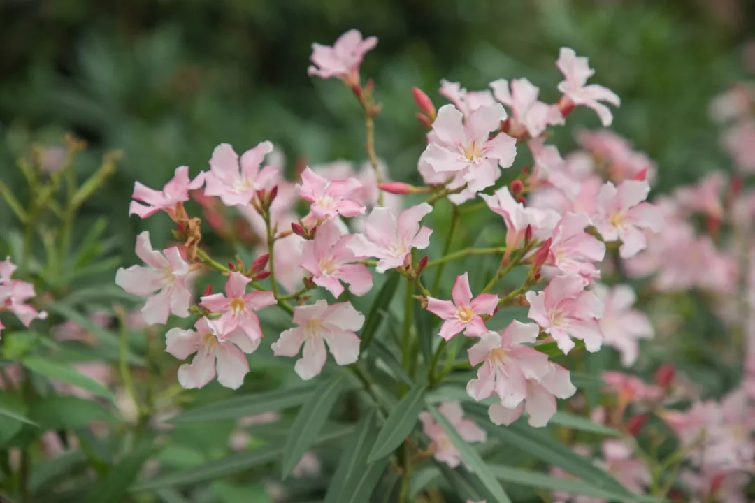 夾竹桃鼎鼎有名,不僅因為季羨林先生的散文,更因為看似嬌俏的它,卻有著極強的毒性,平時的觀賞并無大礙,但如果誤食了甚至有可能致命,所以只可遠觀不可褻玩焉。