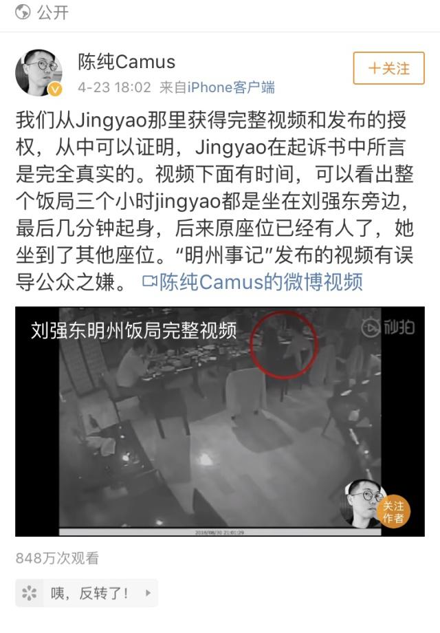 就在人們以為事件就此平息的時(shí)候,又爆出一系列和該案有關(guān)的料。首先是本案當(dāng)事人LIUJINGYAO宣布起訴京東集團(tuán)及劉強(qiáng)東。4月22日、23日微博上爆出監(jiān)控視頻以及劉強(qiáng)東美國(guó)律師和LIUJINGYAO之間電話(huà)談話(huà)的錄音。