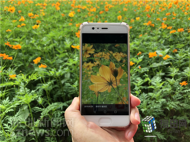 市民用手機拍下花朵后準備發(fā)到朋友圈給大家分享。