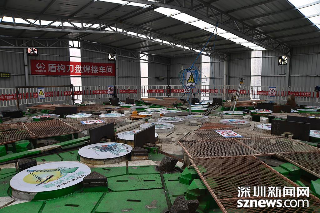 春風(fēng)隧道中的盾構(gòu)刀盤焊接車間