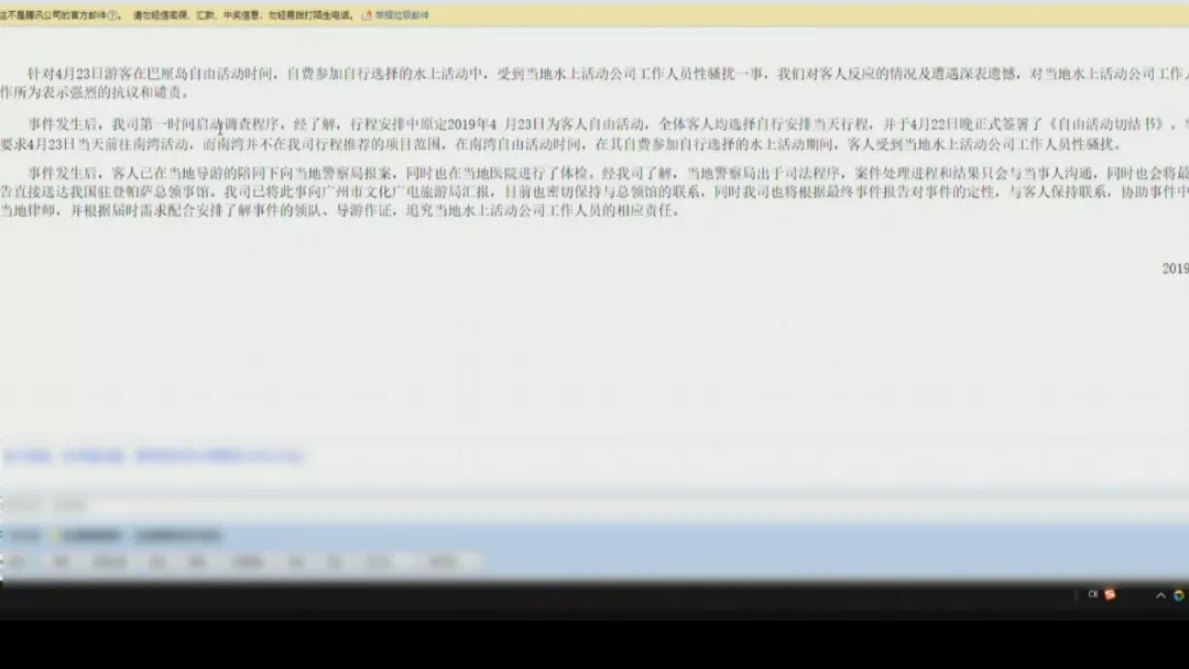 印尼方在26號召開了新聞發(fā)布會,確認(rèn)了楊先生的女兒被侵犯的事實。據(jù)了解,嫌疑人今年29歲,是爪哇島人,目前在等待下一步的審判結(jié)果。隨后記者聯(lián)系到了南湖國旅的工作人員,對方表示不方便接受采訪,隨后發(fā)來了一個回應(yīng)郵件。