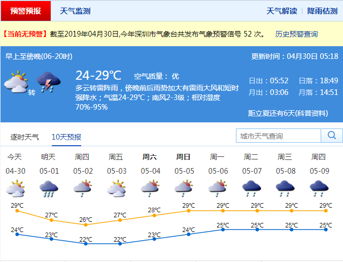 深圳新聞網(wǎng)2019年4月30日訊 記者從市氣象局了解到,受冷空氣、高空槽和切變線的共同影響,30日至5月1日有一次明顯降雨伴強(qiáng)對流天氣過程,強(qiáng)對流天氣可能對30日下班、放學(xué)時(shí)段造成嚴(yán)重影響,且恰逢五一假期出行高峰期,市民請合理安排出行并注意交通安全,遠(yuǎn)離低洼易澇、危險(xiǎn)邊坡等區(qū)域,盡量避免沿海和海上活動(dòng)。