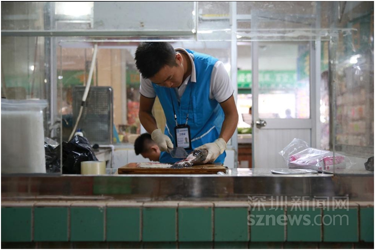 凌晨4時(shí), 食品藥品檢驗(yàn)員吳至燕正在取樣