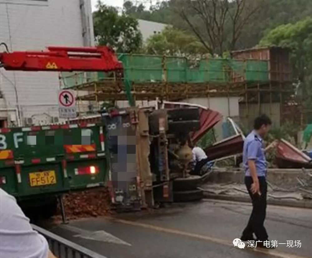 有現(xiàn)場(chǎng)目擊者表示這一次的側(cè)翻事故還造成了一名保安的腿部被壓,已被緊急送往醫(yī)院。