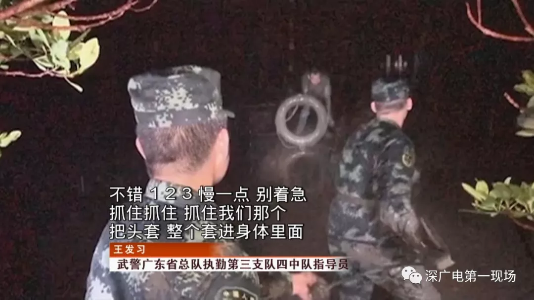 由于深圳灣海水退潮后淤泥深淺不一,直接下海救人非但沒把握,還是魯莽行為,在觀察現(xiàn)場情況,并對救援進行科學(xué)研判后,武警官兵們通過拋投救生圈進行救援。