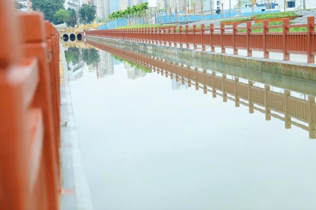 看到兩岸新修的朱紅色仿木欄桿