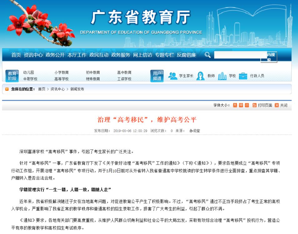 目前,深圳市已成立專(zhuān)項(xiàng)工作小組進(jìn)行調(diào)查。廣東省教育廳廳長(zhǎng)景李虎昨天表態(tài),將在10號(hào)前對(duì)外省轉(zhuǎn)入生轉(zhuǎn)學(xué)條件進(jìn)行排查,并公布舉報(bào)郵箱,對(duì)“事情進(jìn)行徹底的整理”,明確:“一旦發(fā)現(xiàn)高考移民將安排回原籍高考,高考后發(fā)現(xiàn)高考移民將取消高考成績(jī)”。