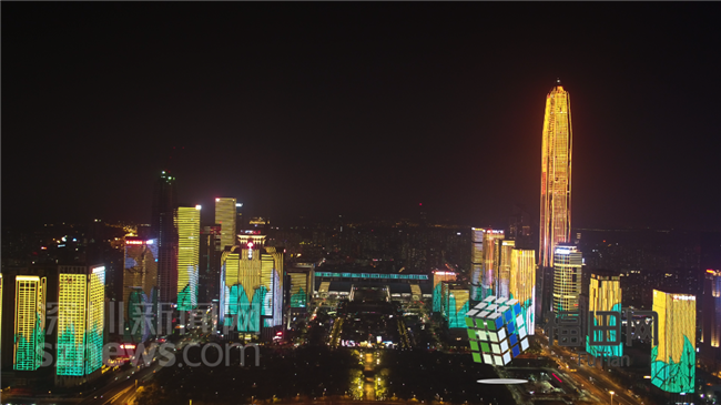 文博會期間,深圳市民中心的燈光秀每晚三場新舊版本輪番播放。