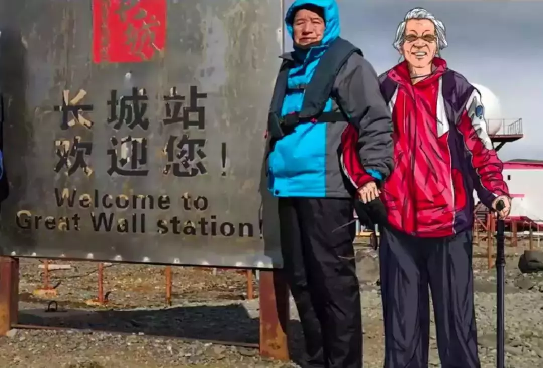 用手繪定格這份愛,幫助邱協(xié)耕和他最愛的人南極“合影”。圖源:央視新聞