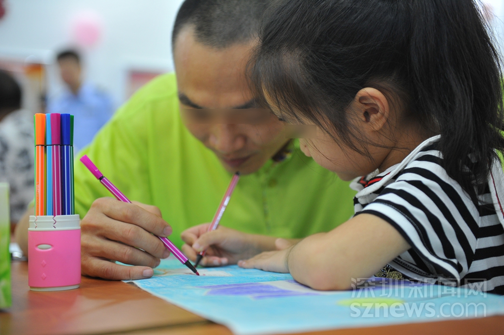 三歲半的圓圓自出生以來從未見過爸爸張某,這次在獄內(nèi)相見,一開始對身邊爸爸滿是錯(cuò)愕,完全把他當(dāng)成了陌生人,在媽媽的鼓勵(lì)下,才慢慢有了親情上的觸碰。張某把圓圓摟在懷里,眼睛從未離開過女兒,一會(huì)摸摸女兒的胳膊,一會(huì)給女兒拆零食,也陪著她做做涂鴉??沙诉@些,他暫時(shí)卻找不到和女兒交流更好的辦法。